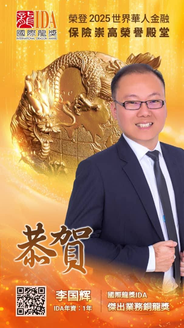 🏆 我带领的团队连续年荣登百万圆桌(MDRT),我本人也荣获 GSPC 公司顶尖业绩奖及 IDA 国际龙奖 💎。这一切背后,是专业知识、实际经验,以及对每一位客户的真诚投入。